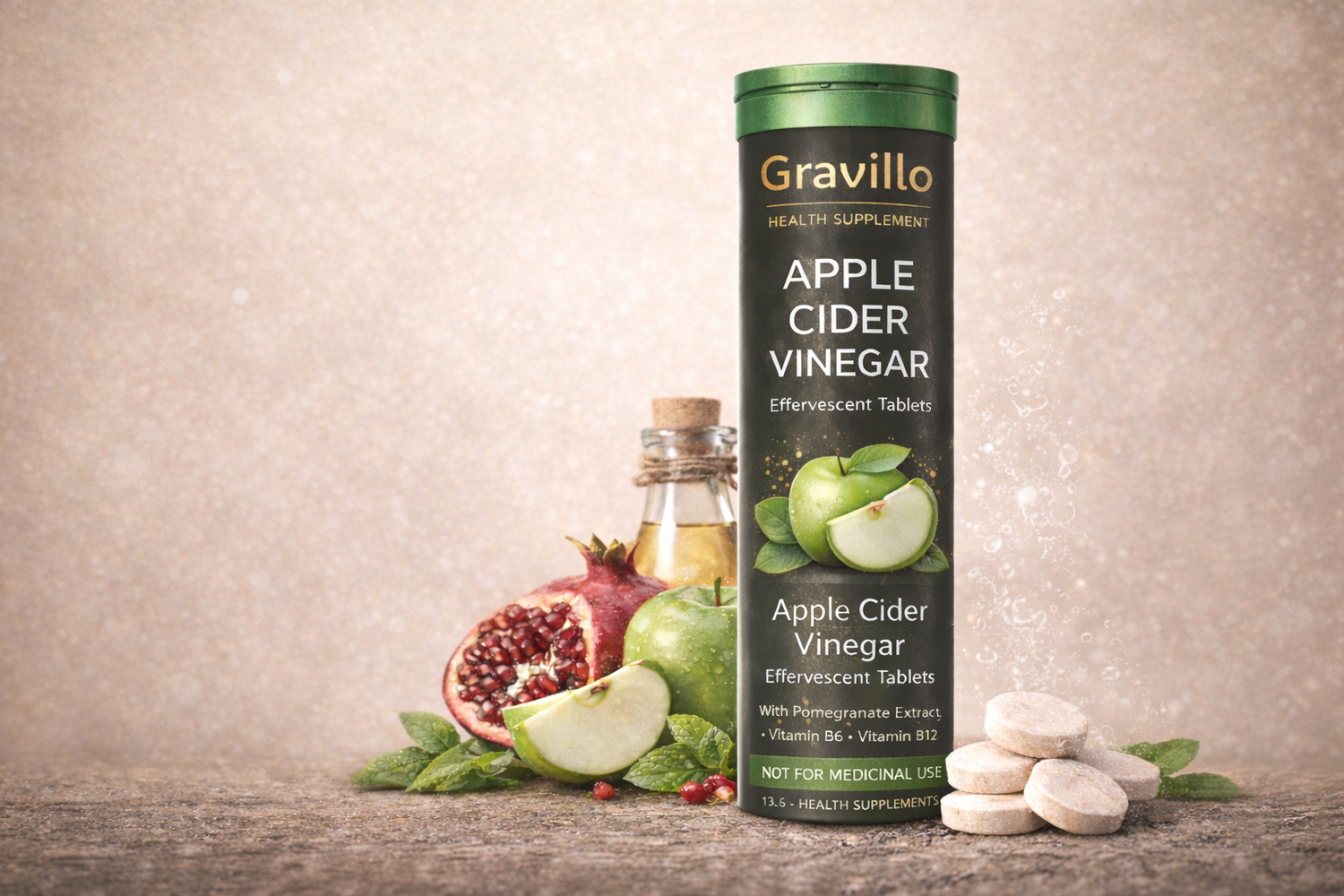 Apple Cider Vinegar Effervescent Tablets (500 mg per tablet)| With Vitamin B6 & B12 | Green Apple Flavour | Pack of 20 Tablets | Health Supplement